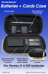 Take control of your Pentax camera batteries and memory cards with ShutterBands' new Batteries + Cards Case for Pentax D-Li109 batteries.
