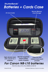 Take control of your Canon camera batteries and memory cards with ShutterBands' new Batteries + Cards Case for Canon NB-10L batteries.