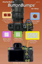 ButtonBumps are not just any stick-on bumper. They are custom-molded to fit each button on your Sony camera. So they look great and work even better. Bumps are included for all of the buttons on your camera, including the shutter-release button and focus-hold buttons on some Sony lenses.